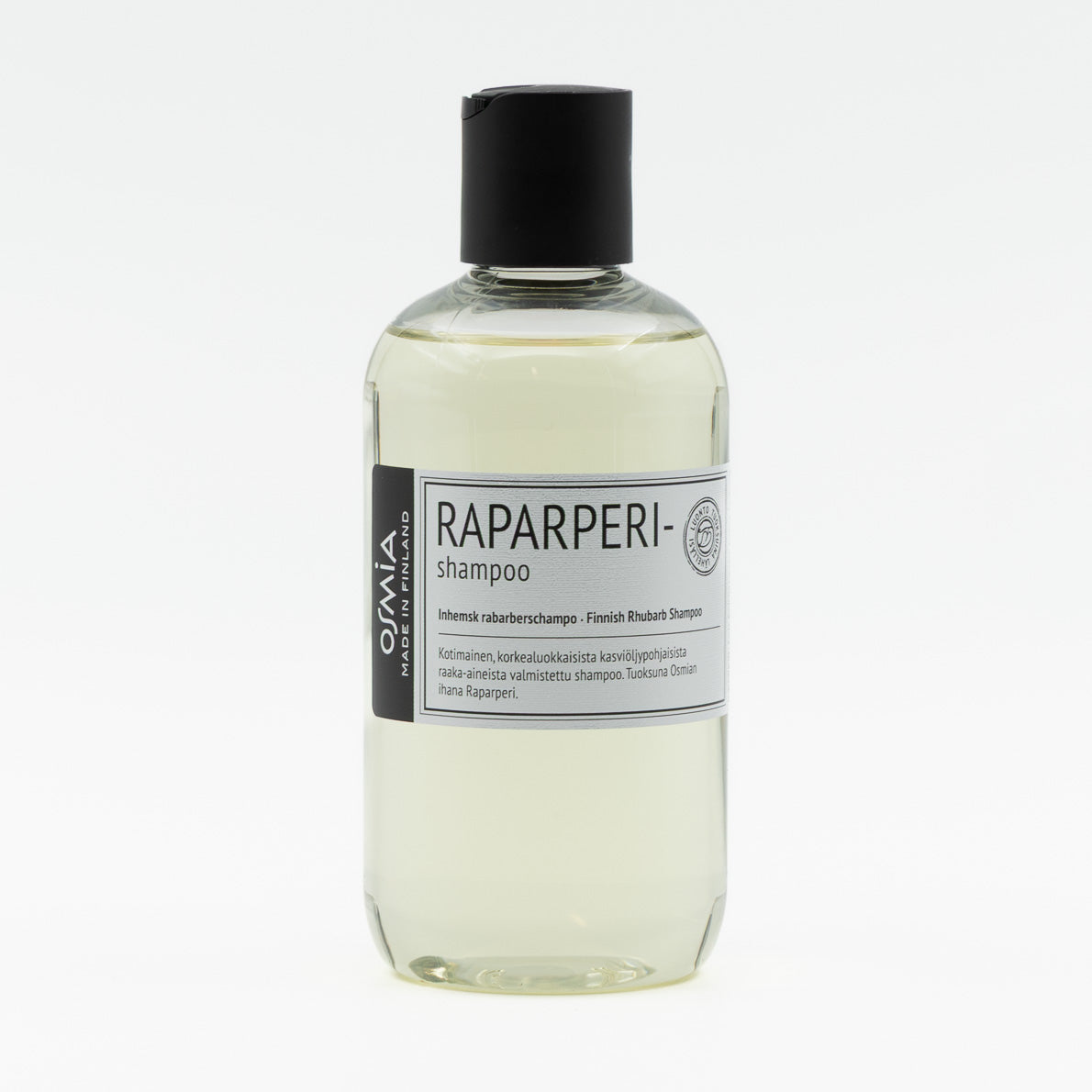 Osmian suosittu Raparperi tuoksu nyt saatavilla shampoona. Korkealuokkaisista kasviöljypohjaisista raaka-aineista valmistettu shampoo. Virkistää päänahkaa, antaa elinvoimaa ja kiilto hiuksille.Tuoksuina Osmian alkuperäinen Raparperia-aromi.